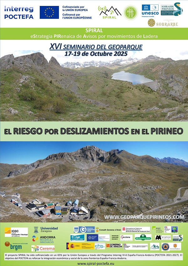 Os presentamos una nueva edición del Seminario del Geoparque que tendrá lugar los días 17,18 y 19 de octubre en Boltaña. Sede de la Comarca de Sobrarbe. En esta ocasión forma parte de una de las acciones que se desarrollan desde el proyecto SPIRAL (eStrategia PIRenaica de Avisos por movimientos de Ladera,) en el que el Geoparque colabora como asociado del proyecto de la mano de la Universidad de Zaragoza.