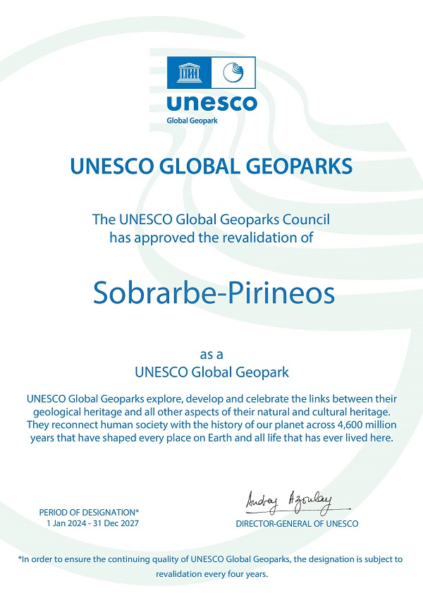 Estamos de enhorabuena porque nuestro Geoparque ha revalidado la distinción que le acredita como Geoparque Mundial durante los próximos 4 años. Recientemente el programa internacional de Geociencias y Geoparques de la UNESCO ha remitido al Geoparque el certificado oficial que así lo acredita.